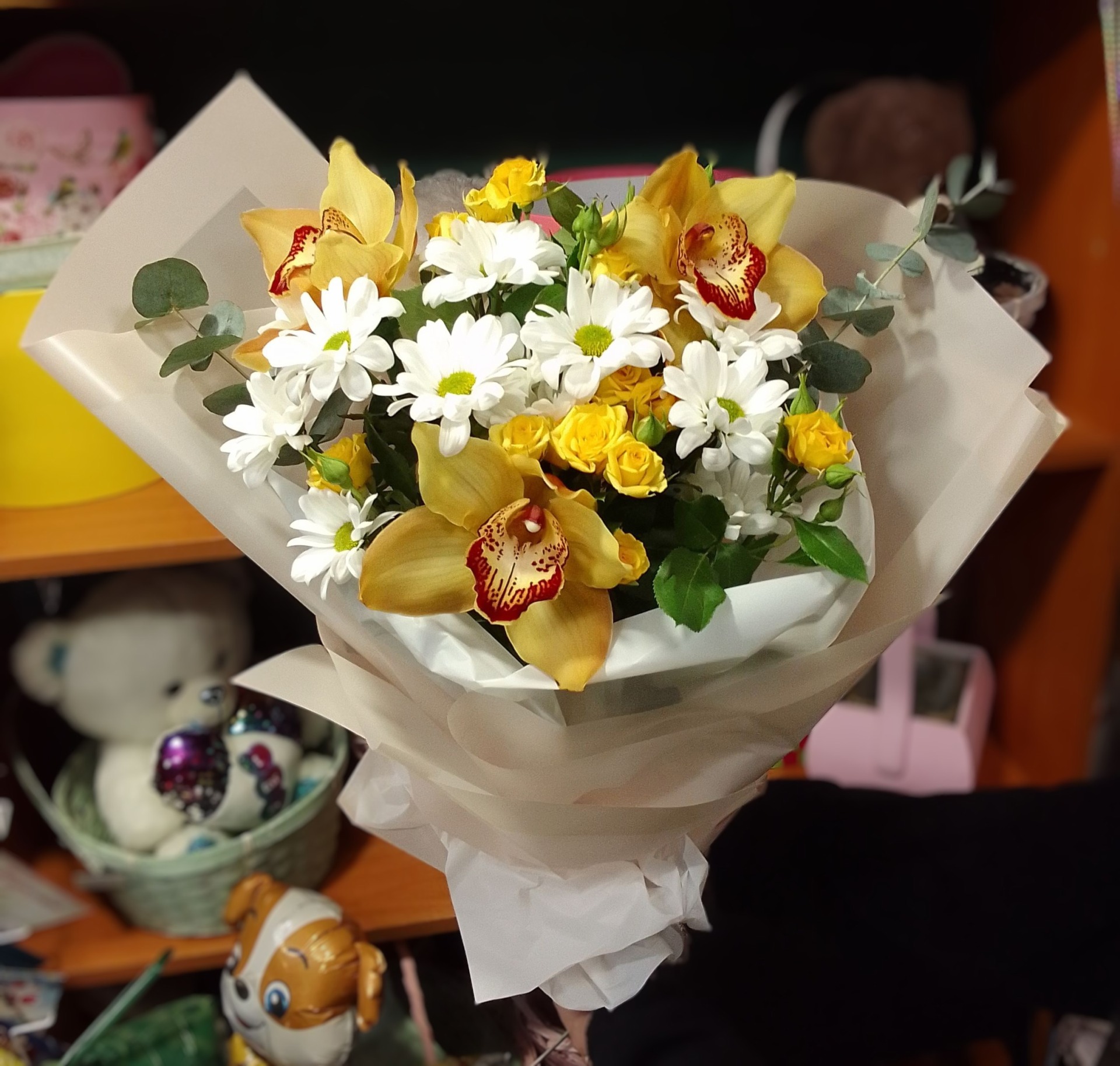 Мы можем выполнить букет любой сложности или композицию по вашему желанию! Составим букет по фото или, исходя из ваших предпочтений.К сожалению мы не можем разместить на сайте все букеты и все виды цветов, так как их очень много. Профессиональные флористы с многолетним опытом работы могут составить любой букет или композицию на ваш вкус и бюджет.