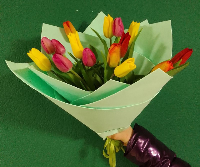 Состав: тюльпаны 15 шт, фоамиран.